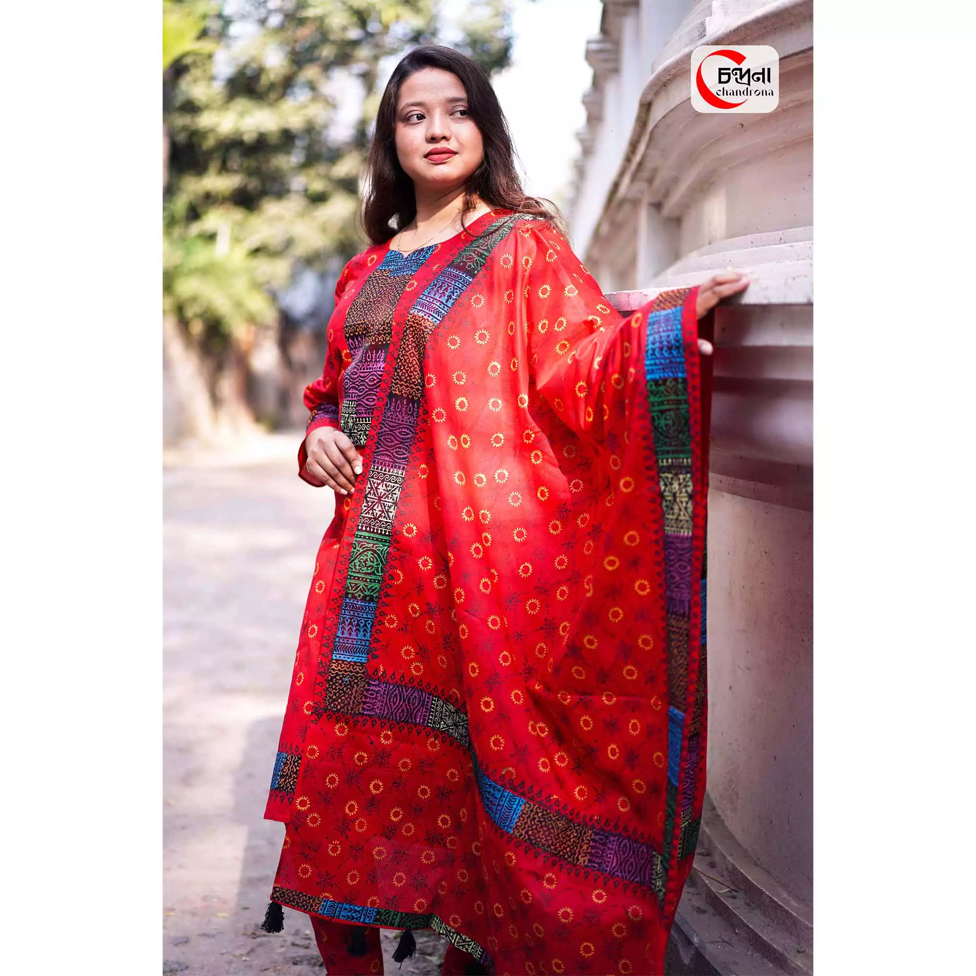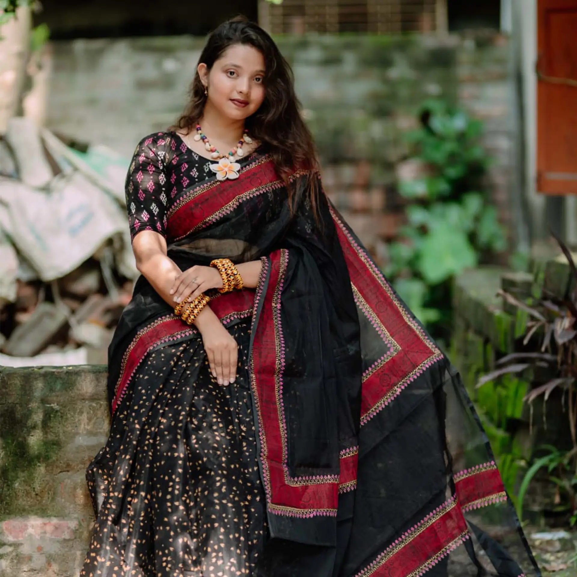 ব্ল্যাক শাড়ি রেড প্যাচওয়ার্ক
