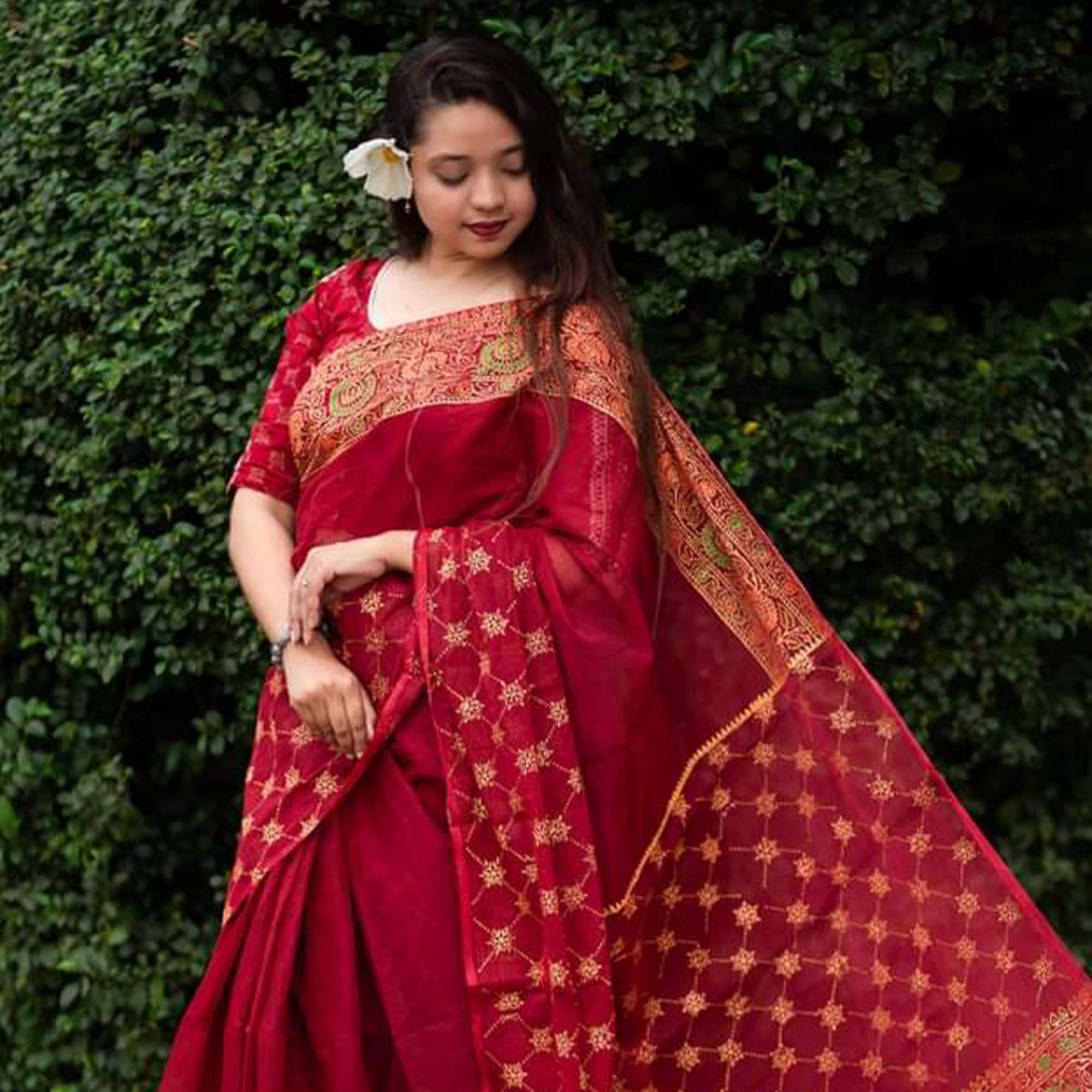 সুতার কাজের প্রিমিয়াম সুতি শাড়ি ১০০% পিওর কটন