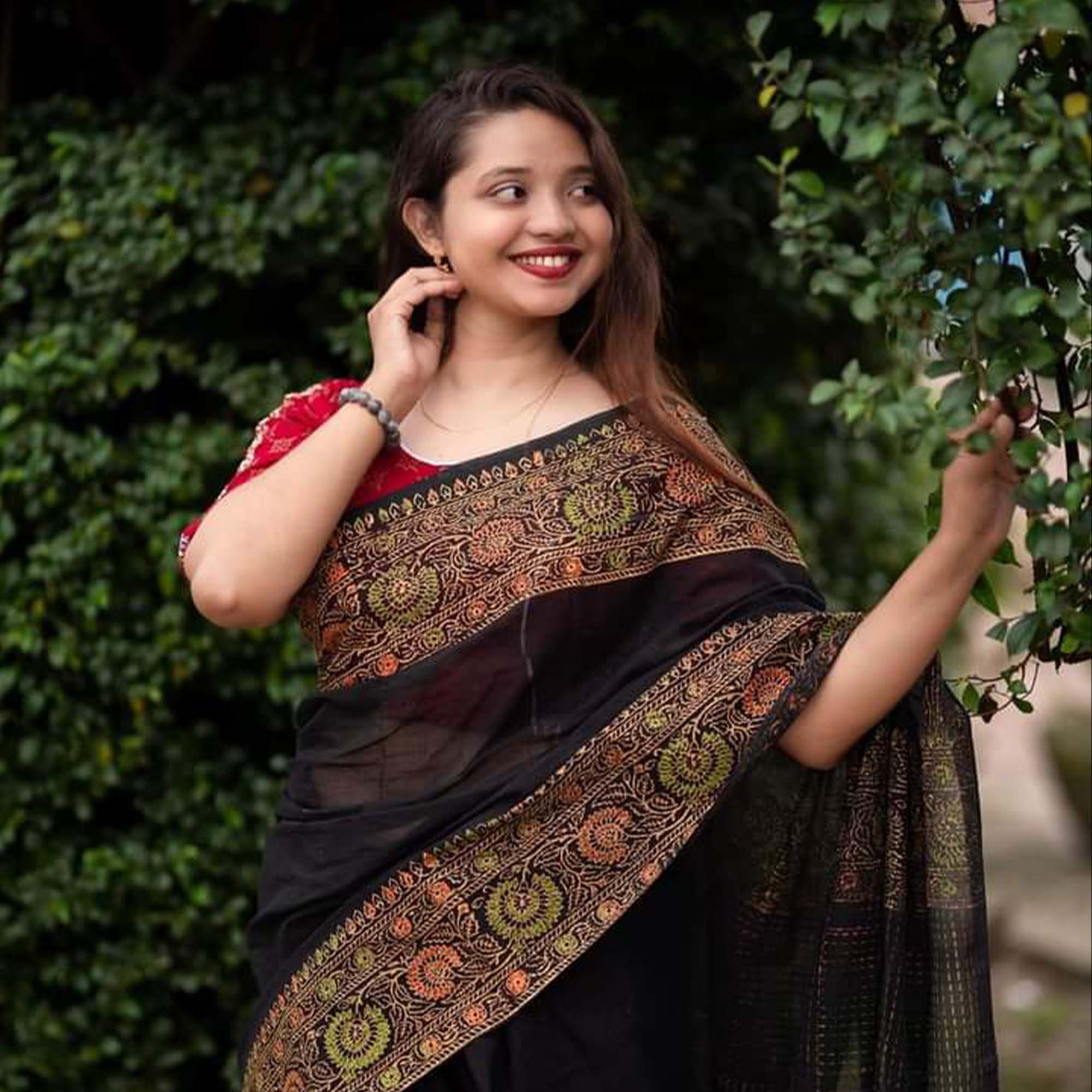 ব্লকপ্রিন্ট সুতি শাড়ি – পারমানেন্ট প্রিন্টে প্রিমিয়াম ১০০% পিওর কটন শাড়ি