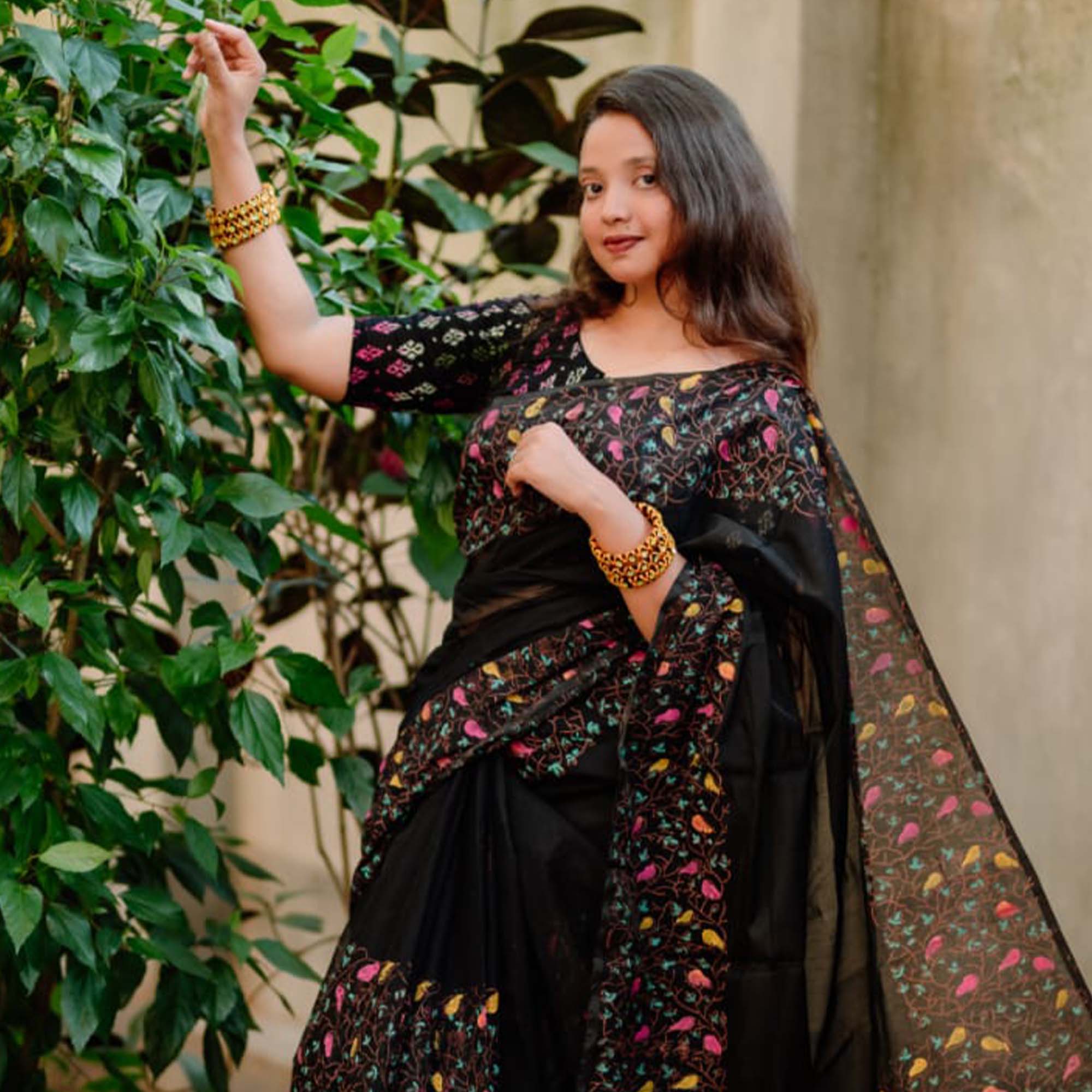 সহজিয়া ব্ল্যাক ফুল শাড়ি