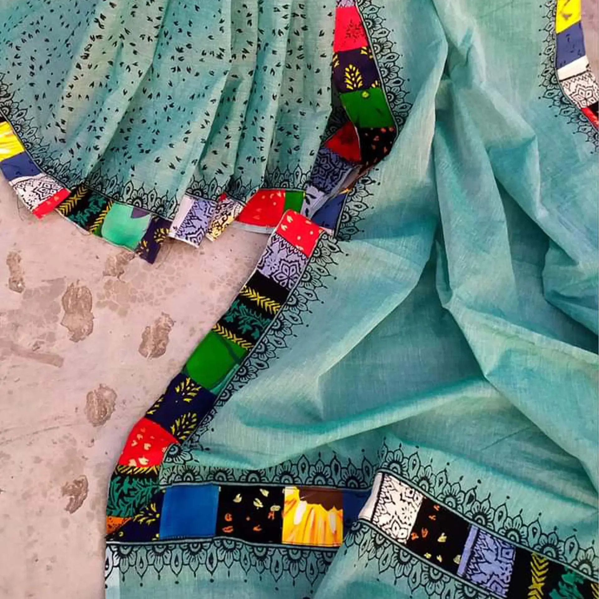 প্রিমিয়াম আকাশি প্যাচওয়ার্ক শাড়ি