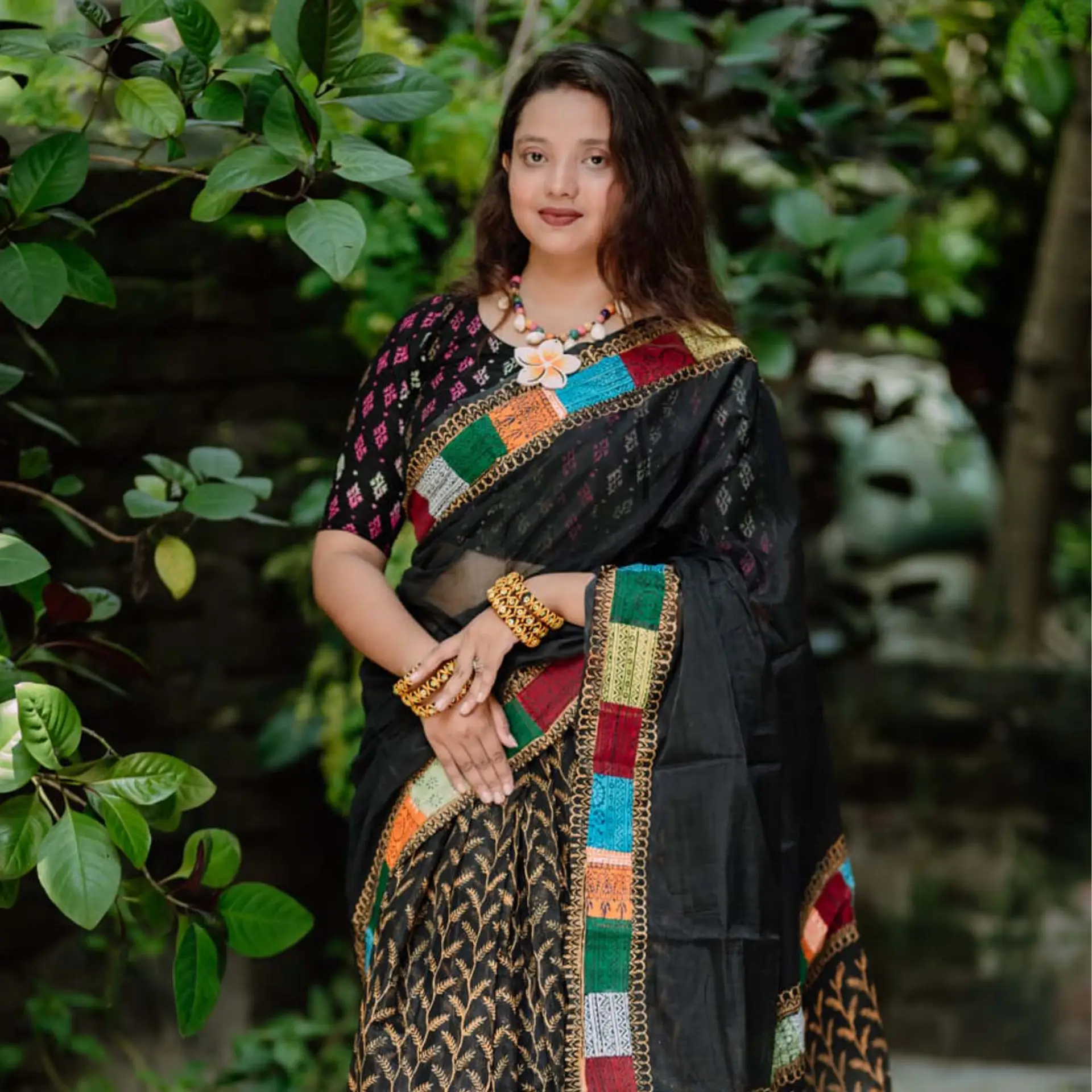ব্ল্যাক লতা প্যাচওয়ার্ক শাড়ি