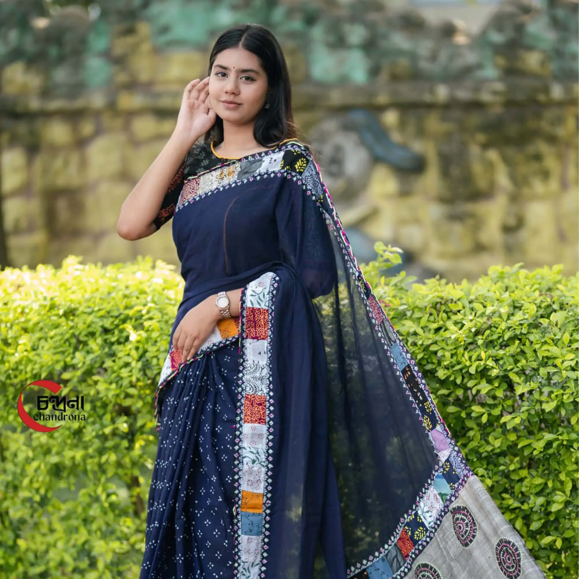প্রিমিয়াম নেভী এন্ডি প্যাচওয়ার্ক শাড়ি