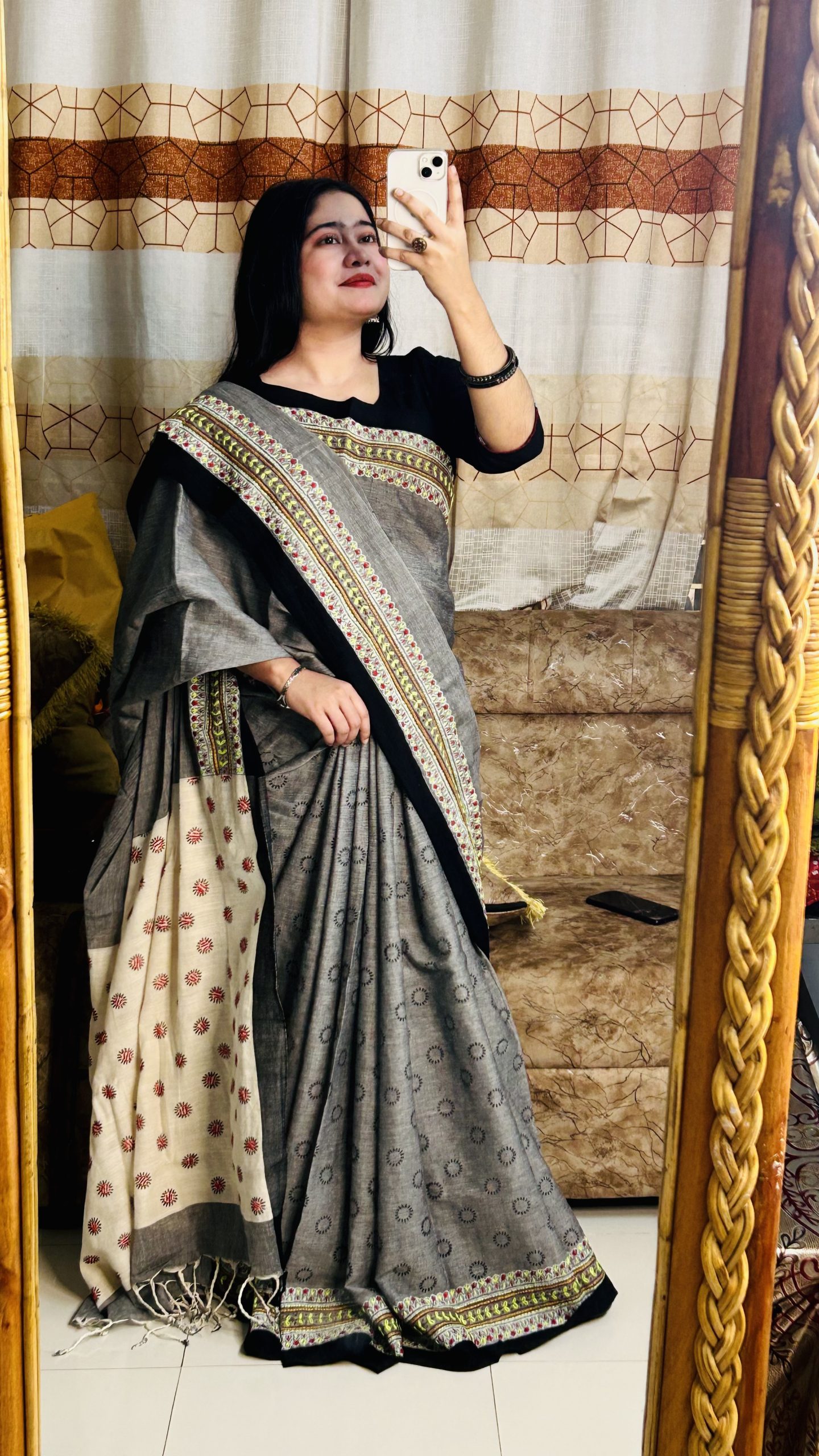 পিওর কটন ব্লকপ্রিন্ট শাড়ি – প্রিমিয়াম সুতি ১৪ হাতের শাড়ি