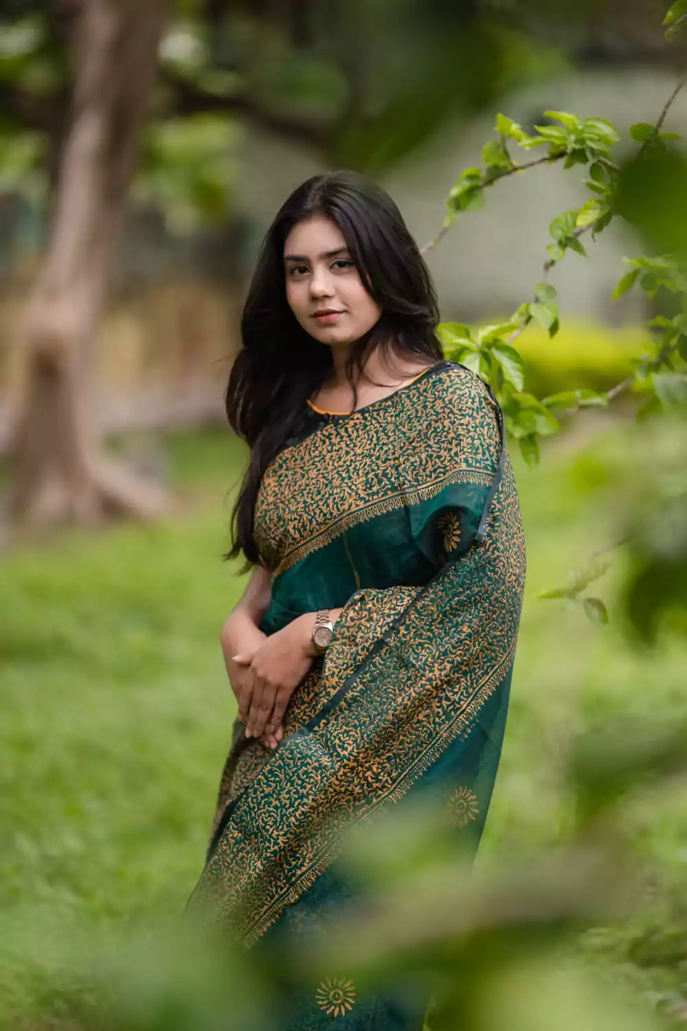 সহজিয়া সিদ্ধ জলপাই নকশী শাড়ি