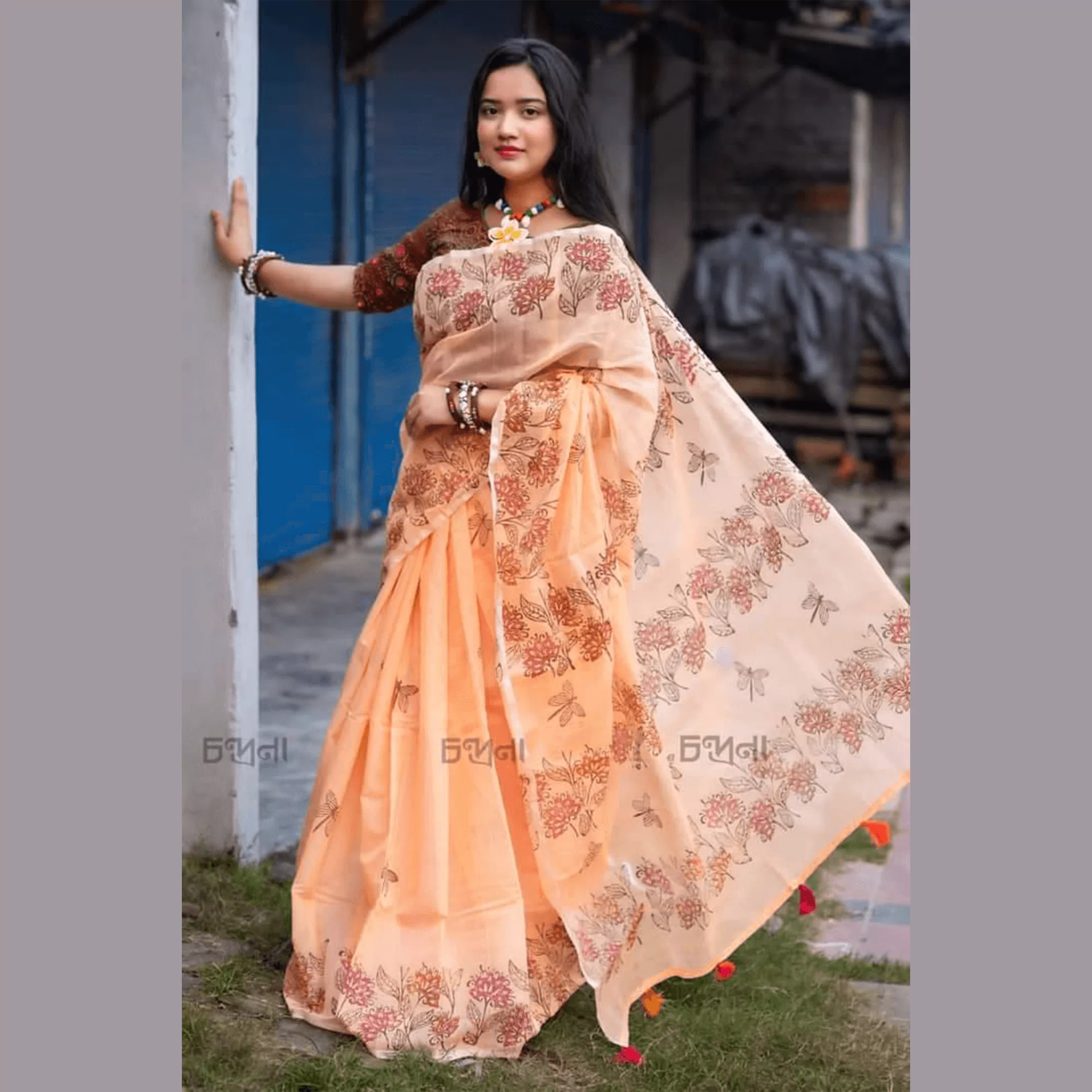 সহজিয়া নুড পিংক ফুল শাড়ি