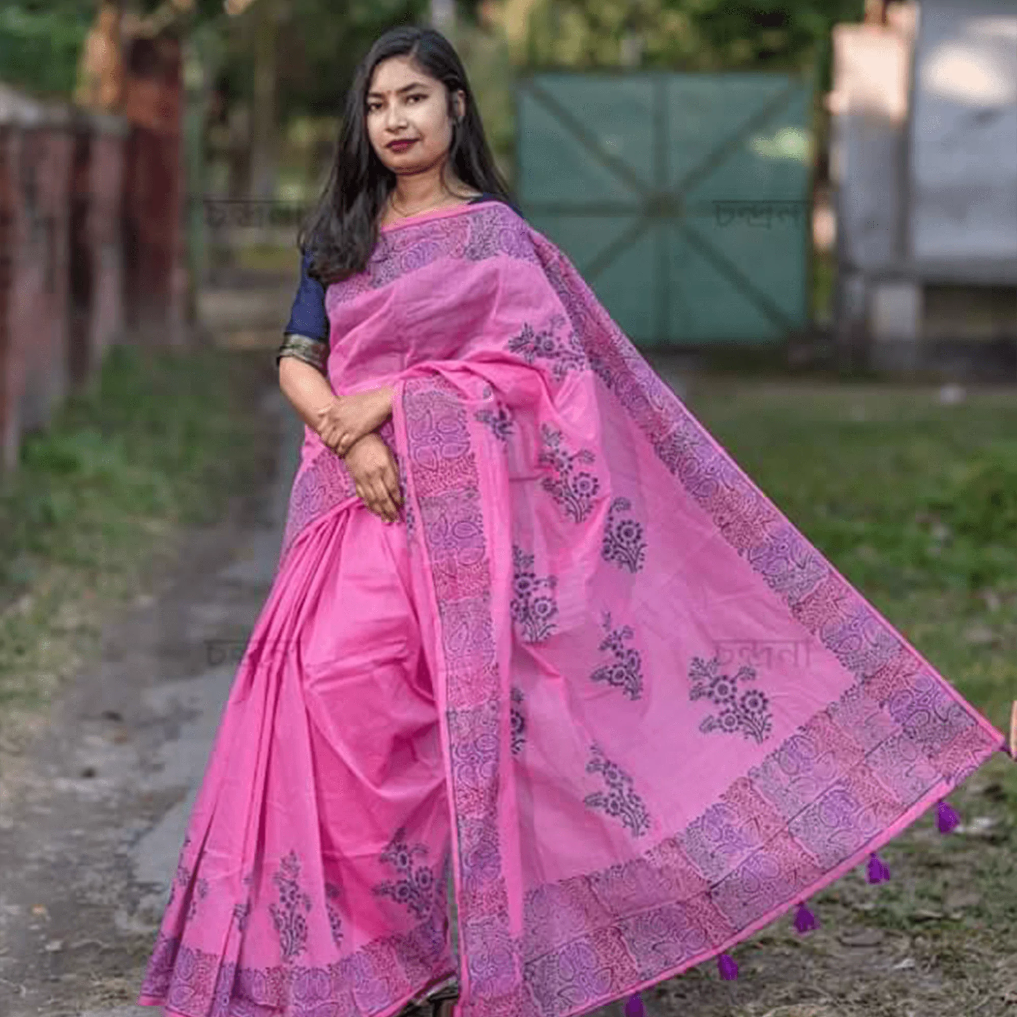 পারমানেন্ট ব্লকপ্রিন্ট সুতি শাড়ি – প্রিমিয়াম ১০০% পিওর কটন ১৪ হাতের শাড়ি