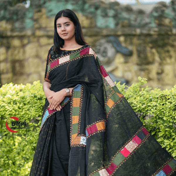 ব্ল্যাক প্যাচওয়ার্ক শাড়ি